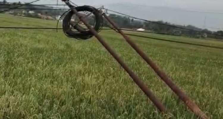 Tiang Penyangga Kabel Condong ke Sawah, Belum Ada Tindakan dari Pihak Terkait Cianjur