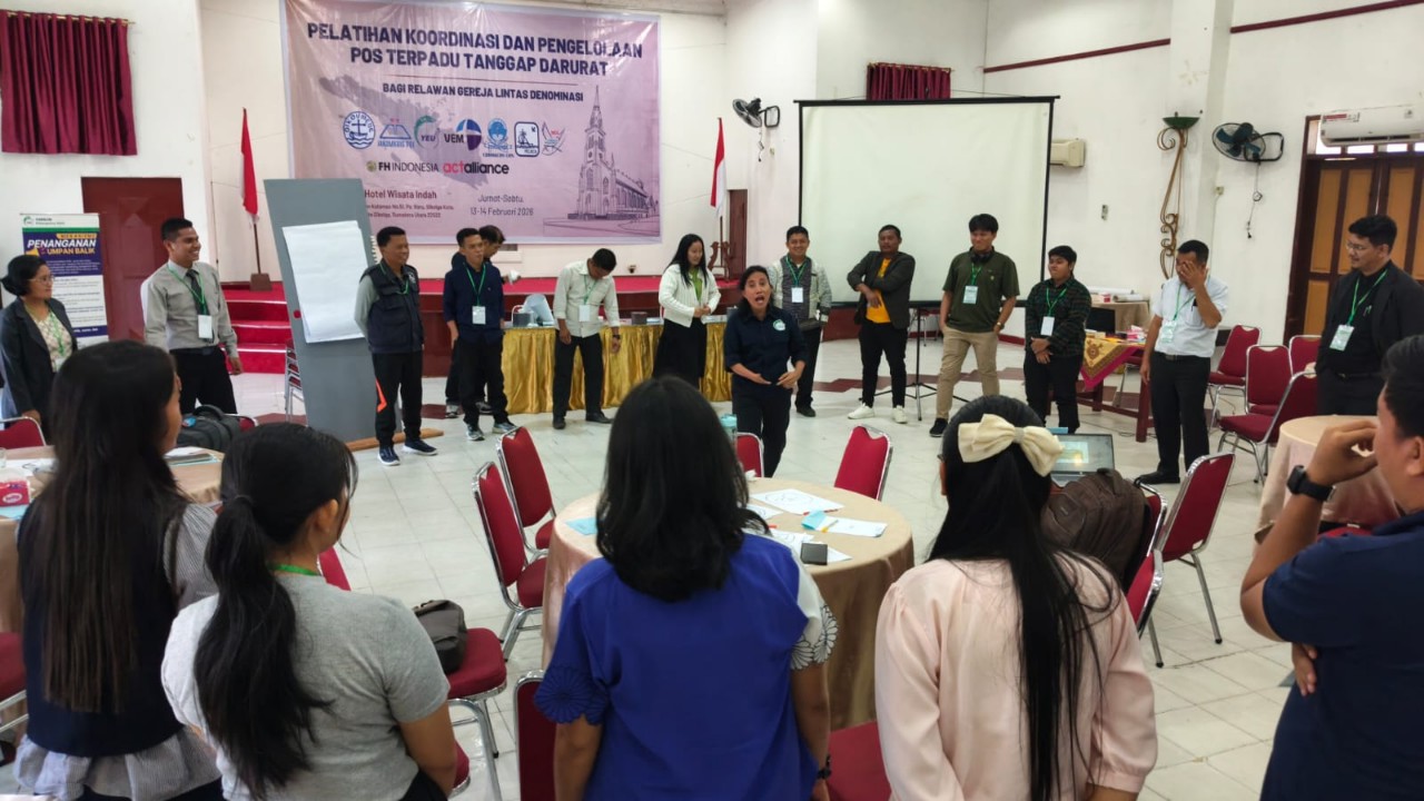 Sibolga | Sebanyak 50 relawan dari berbagai gereja di Sumatera Utara mengikuti pelatihan koordinasi dan tanggap darurat bencana yang berlangsung pada 13–14 Februari 2026 di Kota Sibolga. Kegiatan ini merupakan kolaborasi antara gereja dan sejumlah lembaga kemanusiaan yang bertujuan meningkatkan kapasitas relawan dalam penanggulangan bencana.