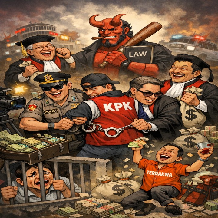 Korupsi di negeri ini bukan sulit diberantas karena penjahatnya pintar, tapi karena penegak hukumnya terlalu sibuk saling menangkap.