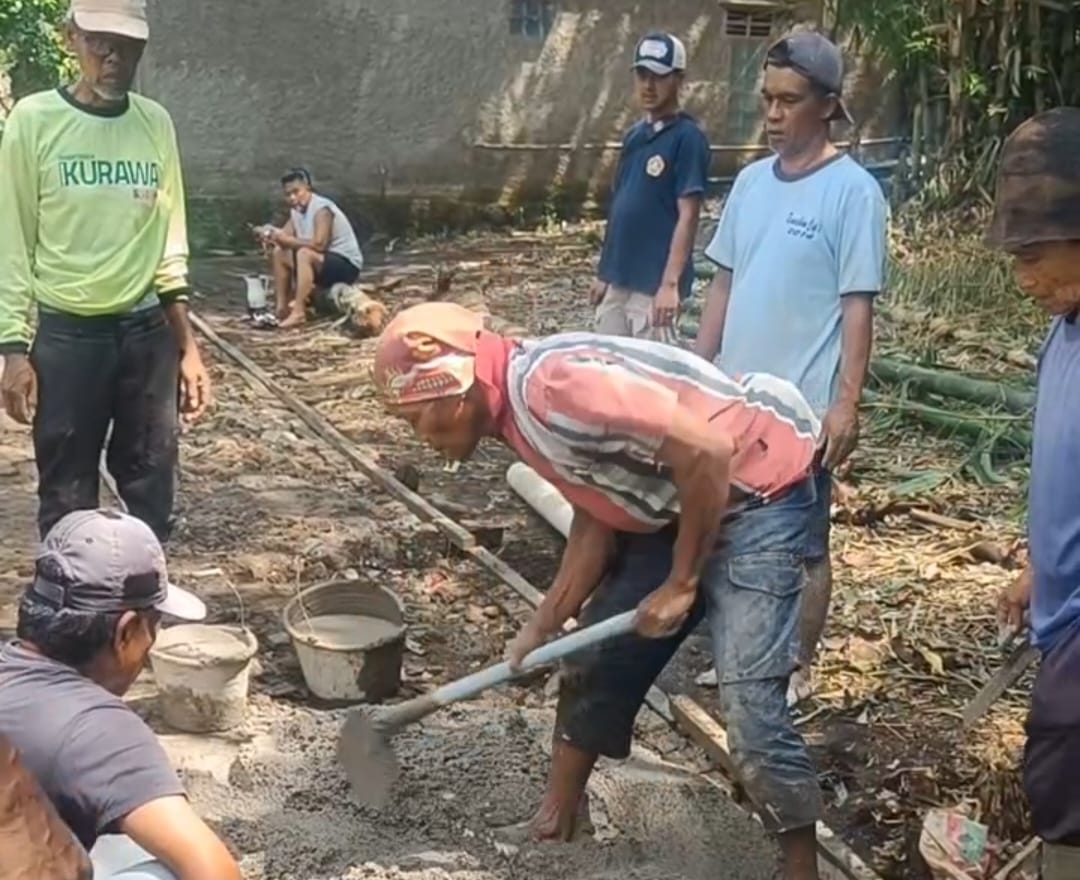 CIANJUR | Akses jalan lingkungan mulai dari depan Mesjid sampai dengan ujung jalan menuju Kampung Sirnagalih dengan panjang 300 meter dari lebar 1,2 meter, dirabat beton warga Kampung Bedahan RW 08 Desa Mekargalih Kecamatan Ciranjang Kabupaten Cianjur.