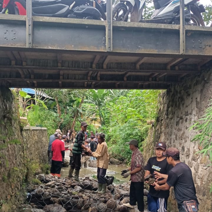 Pantauan metropuncak.com, dengan dipinpin langsung kepala Desanya. Warga mulai beraktivitas sejak pukul 07.00 WIB. Seperti yang ada di lakukan di bawah jembatan kali Cibalukbuk, dan supaya air tidak mengerus pondasi jembatan, wargapun berswadaya memasang 10 beronjong.