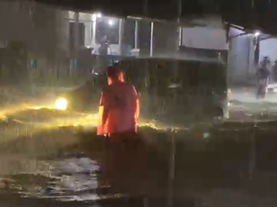Banjir Setinggi Paha Rendam Jalan Utama Cianjur, Drainase Rusak Jadi Biang Kerok. (Foto: Ali).