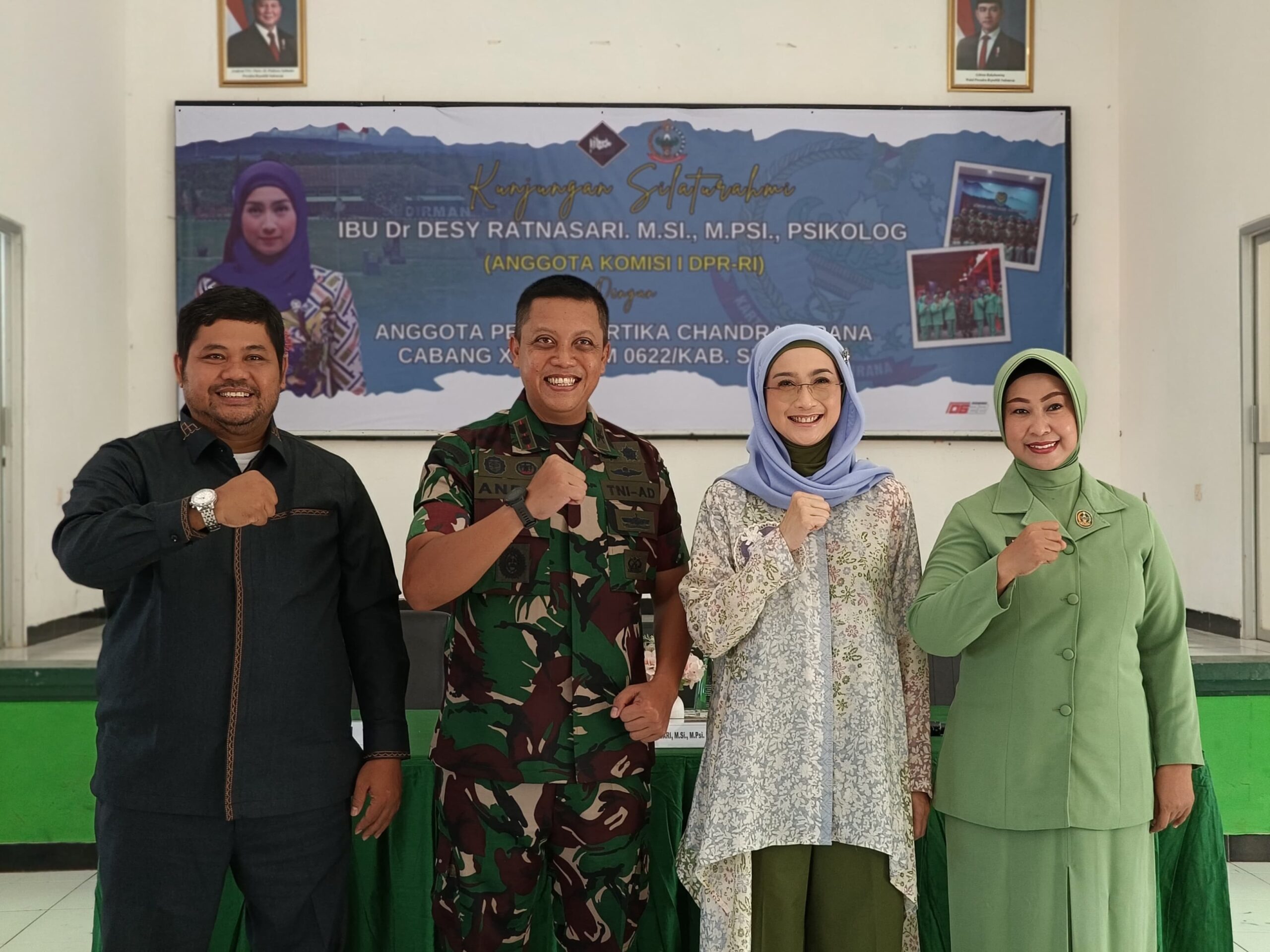 Sukabumi| Berlangsung di Aula Kodim 0622/Kab. Sukabumi, Ibu Dr. Desy Ratnasari, M.Psi., Psikolog, Anggota Komisi 1 DPR RI No. A-504, melakukan kunjungan kerja dan silaturahmi kepada anggota Persit Kartika Candra Kirana Cabang XLV Kodim 0622/Kab. Sukabumi, Senin (2/6/2025).
