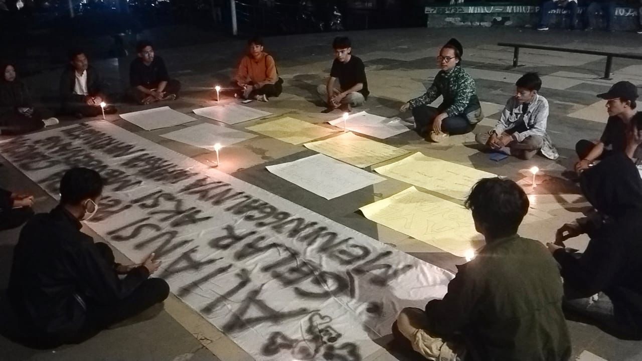 Malam Doa bersama yang digelar di Taman Kreatif Joglo Jalan Siliwangi, diisi mengaji AlQuran, puisi dan orasi penyesalan dalam kampanye Pilkada Cianjur 2024 diduga ada korban jiwa.