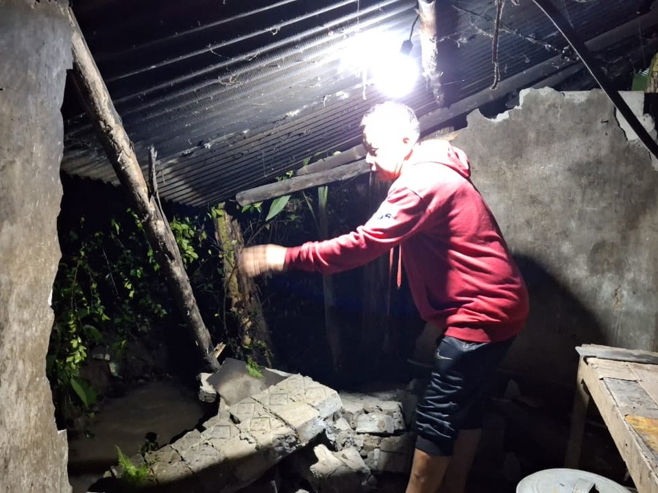 Dinding Dapur Rumah Kakek 67 Tahun di Cianjur Jebol Diterjang Longsor. (Foto: Sam Apip).
