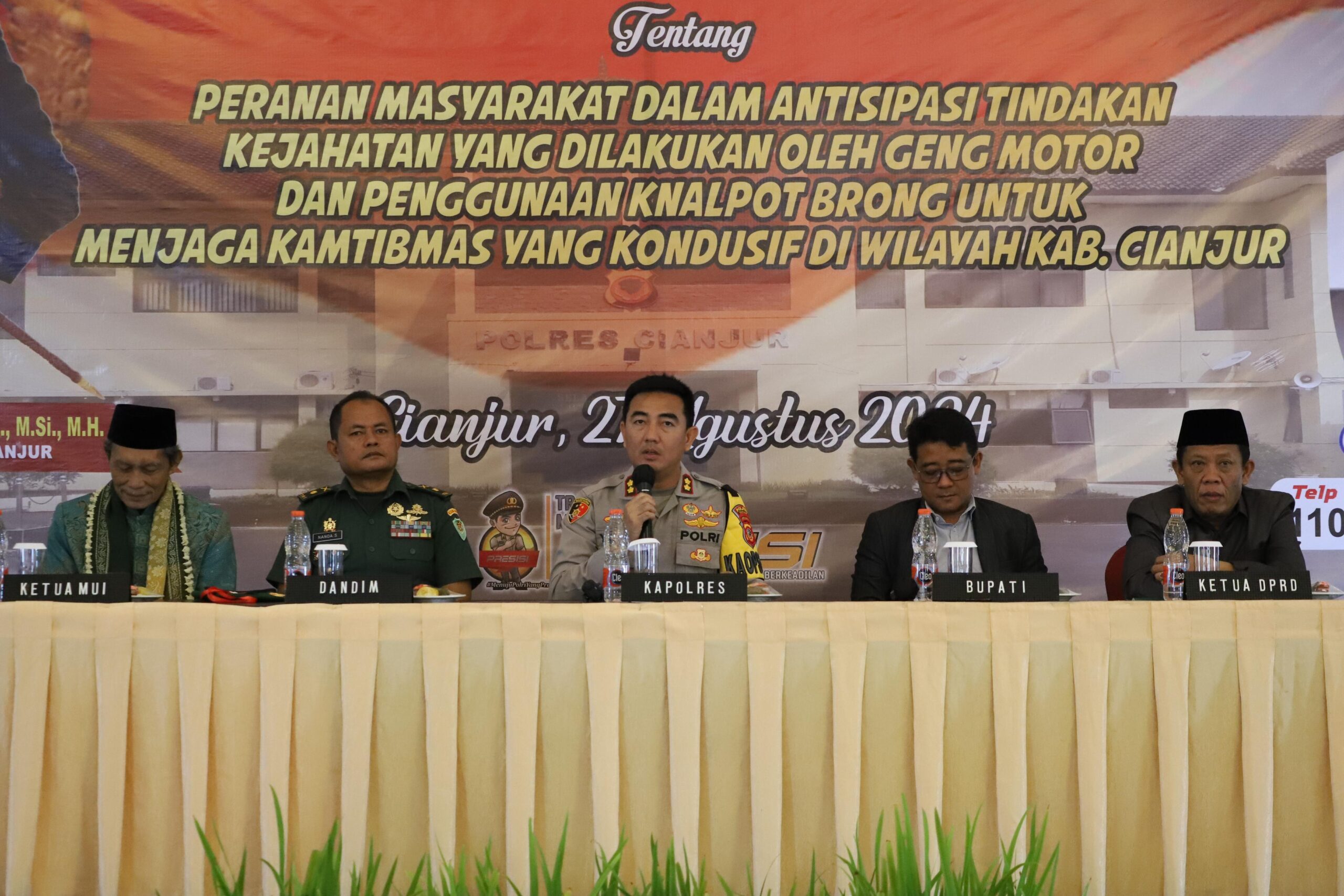 Adapun tema yang diambil pihak pelaksana adalah ‘peranan masyarakat dalam antisipasi tindakan kejahatan yang dilakukan oleh geng motor dan penggunaan knalpot brong untuk menjaga kamtibmas yang kondusif di wilayah Kabupaten Cianjur’.