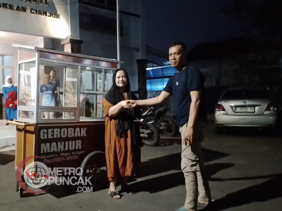 Yulia, penerima manfaat, mengucapkan terima kasih kepada Pemkab Cianjur dan Diskumdagin yang sudah memberikan bantuan gerobak.