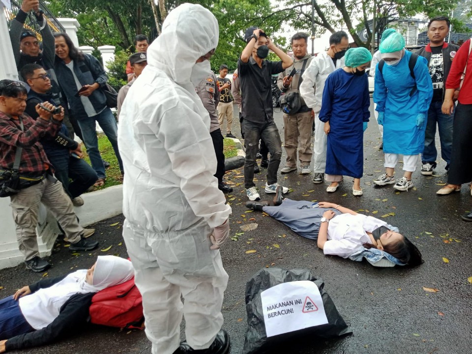 Aksi yang berlangsung tertib dan diawasi aparat kepolisian serta Satuan Polisi Pamong Praja itu diwarnai pengibaran spanduk bertuliskan ‘Negara Telah Meracuni Anak Bangsa’, yang mencerminkan kekecewaan mereka.