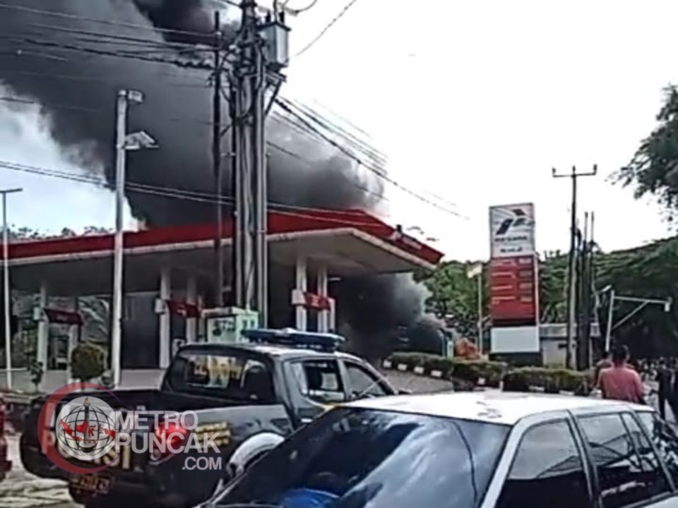 Cianjur | Stasiun Pengisian Bahan Bakar Umum (SPBU) yang terletak di Jl Raya Tanggeung Kecamatan Tanggeung hangus, Rabu 15/01/2025, sekira pukul 14.30 WIB terbakar