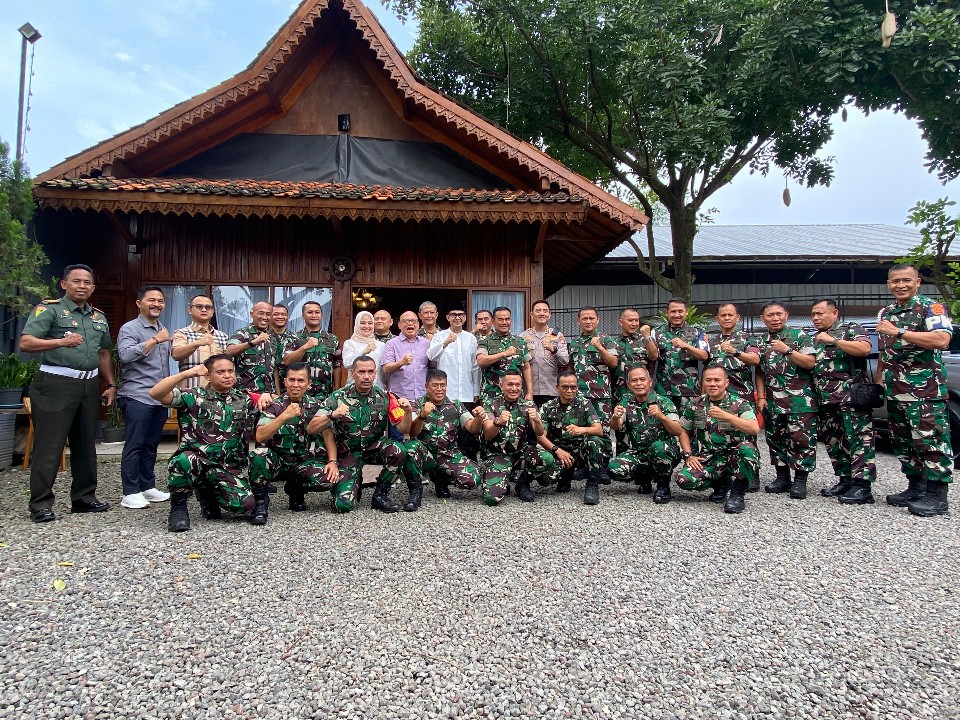 Poto bersama para tamu undangan yang dihadiri Kaskogartap II/Bandung ke Kabupaten Cianjur dalam acara silaturahmi dengan Forkopimda Cianjur di saung kota.
