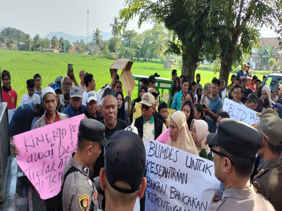 Kepala Desa Ramasari Mengundurkan Diri Pasca Unjuk Rasa Warga. (Foto: Sam Apip).