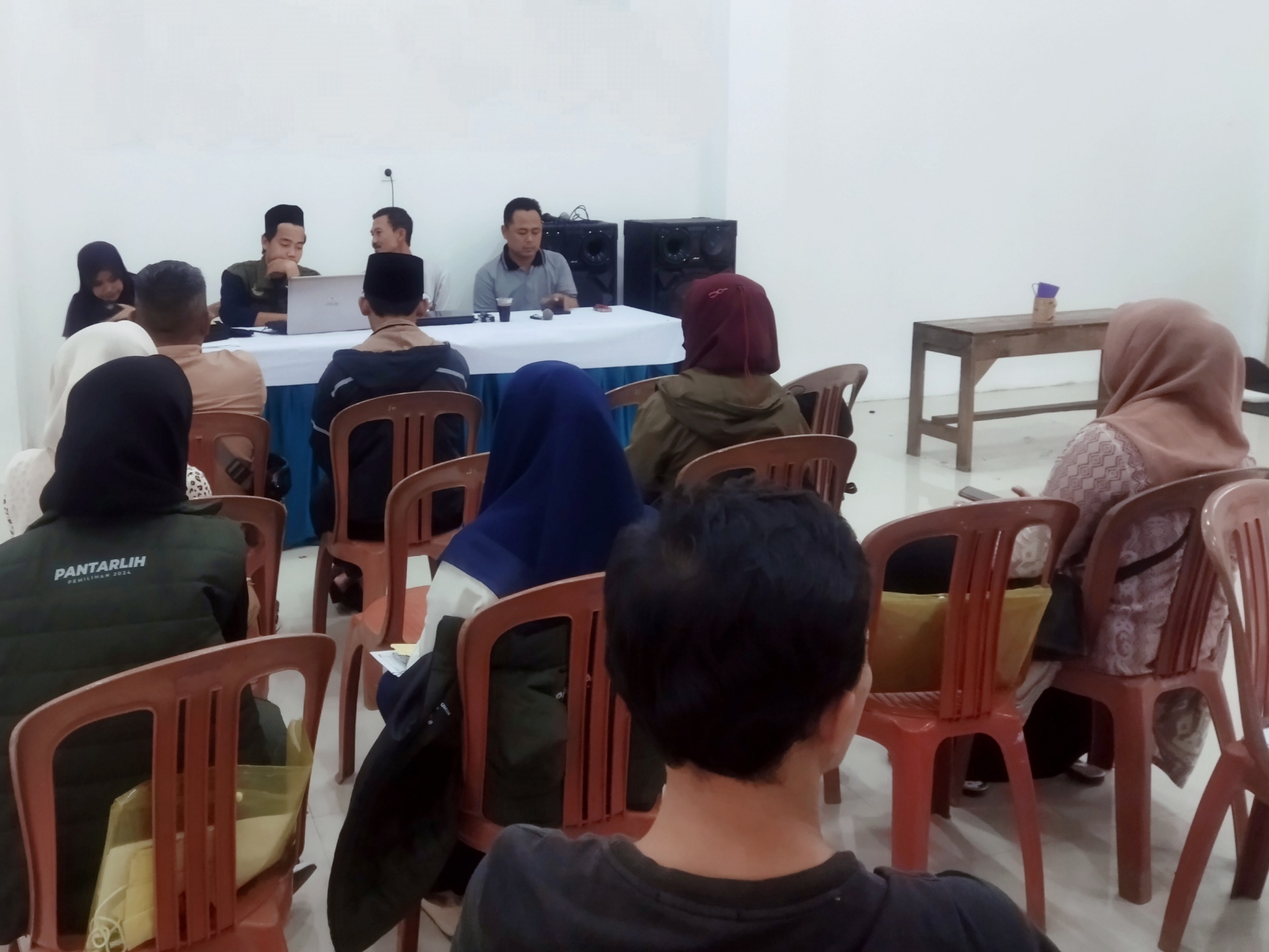 Cianjur | Berlangsung di Aula Desa Talaga, Cugenang, Cianjur, Jawa Barat, Senin 08/07/2024, Pantia Pemutakhiran Data Pemilih (Pantarlih) Desa Talaga, mengumpulkan petugas Pencocokan dan Penelitian (Coklit) daftar pemilih untuk membahas pencapaian coklit di lapangan.