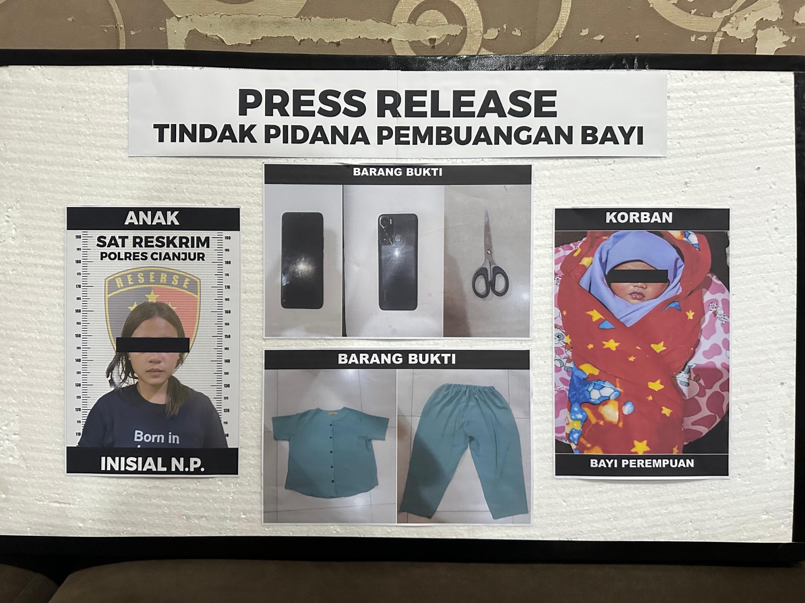Kapolres Cianjur AKBP Rohman Yonky Dilatha, S.I.K., M.Si., M.H. mengatakan, pelaku yang merupakan ibu dari anak tersebut masih berstatus dibawah umur yang berinisial NP (17) yang merupakan warga setempat, sementara untuk bayinya alhamdulillah sampai saat ini dalam kondisi sehat.