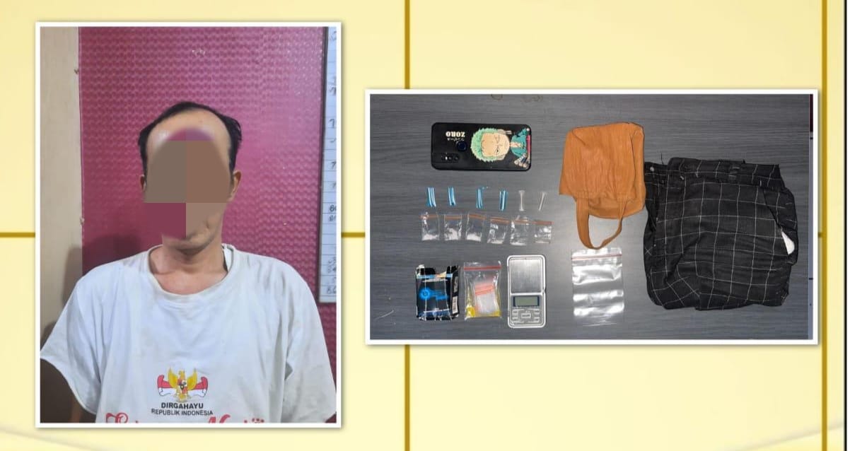 Adapun barang bukti yang berhasil diamankan dari pelaku di tempat kejadian perkara berupa 6 paket narkotika jenis sabu dengan berat keseluruhan 1,06 gram, 1 buah timbangan dan 1 unit handphone.