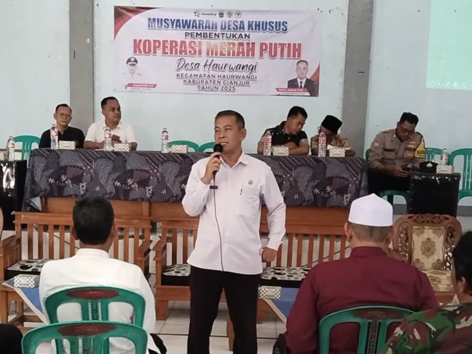Cianjur | Pemerintah Desa/Kecamatan Haurwangi, Kabupaten Cianjur, Jawa Barat, melaksanakan Musyawarah Khusus (Musdesus) pembentukan pengurus Koperasi Desa Merah Putih pada Rabu (11/6/25).