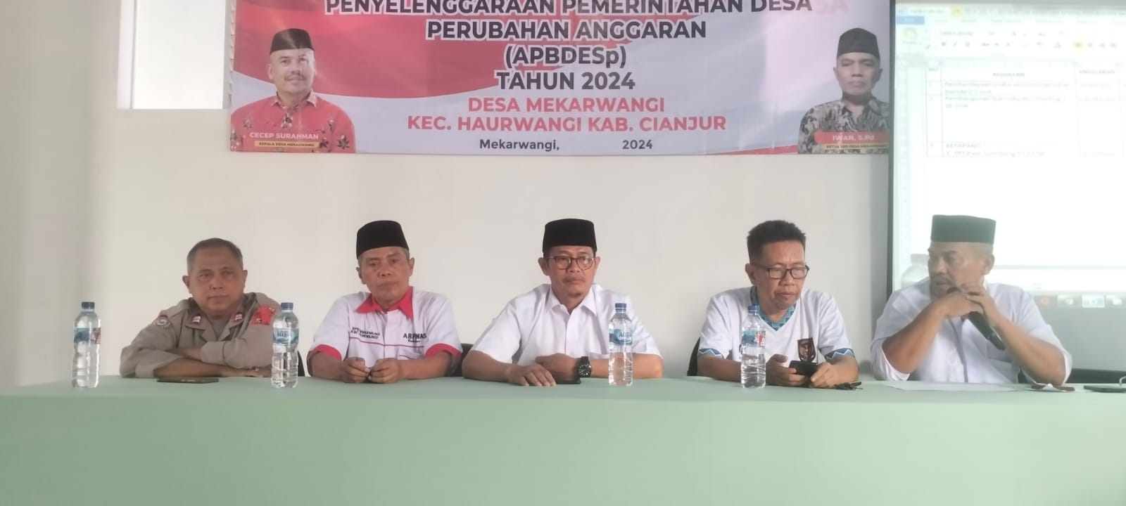Rapat penetapan APBDes tersebut, dilaksanakan di aula desa dan nampak hadir Kasipem dan PPM Kecamatan Haurwangi, kepala desa, Ketua dan anggota BPD, Bhabinkamtibmas, Babinsa, pengurus dan anggota PKK, para Kepala Dusun (Kadus), MUI, Karangtaruna, Ketua RT/RW, para tokoh dan masyarakat sekitar.