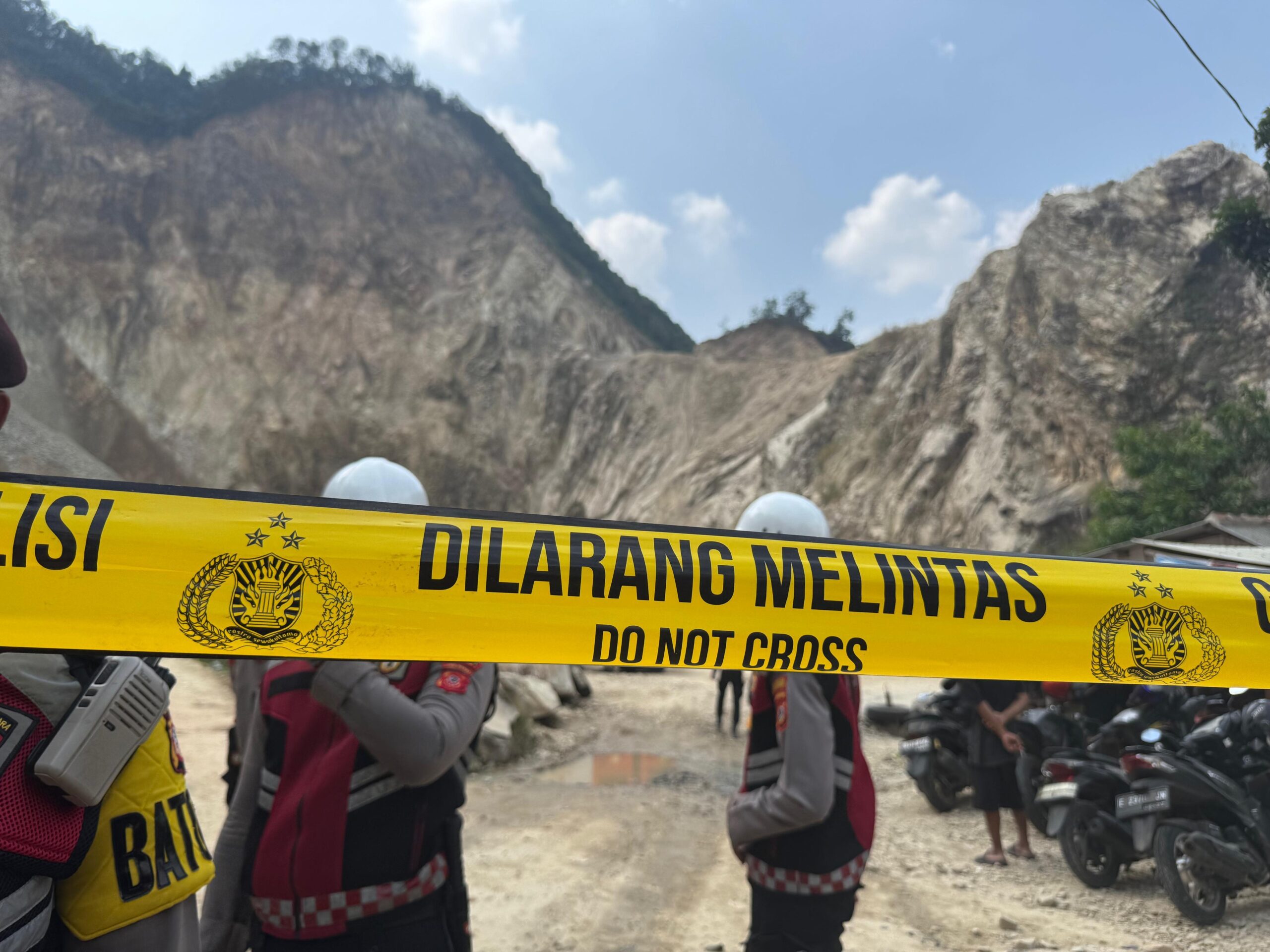 Pemprov Jabar Keluarkan Sanksi Pencabutan Izin Tambang Gunung Kuda Cirebon, Polisi Police Line TKP. (Foto: Istimewa).