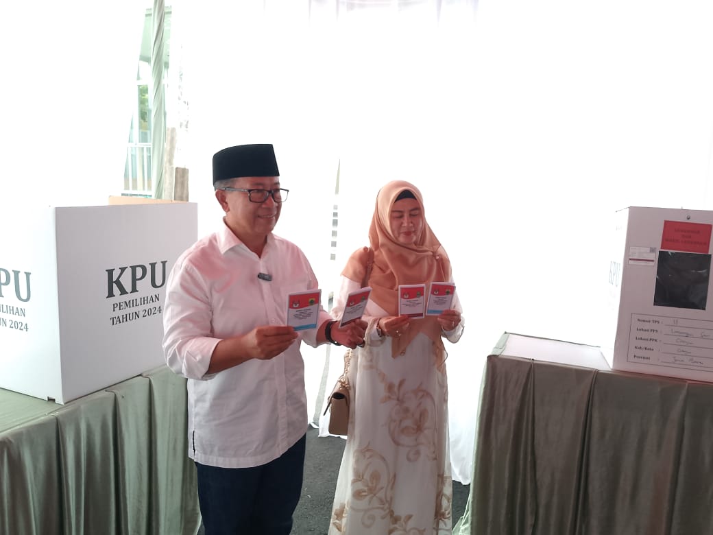 Cianjur | Bupati Cianjur H. Herman Suherman beserta keluarga manfaatkan hak pilih di Pilkada dan Pilgub 2024 yang dilakukan serentak mencoblos di TPS 18, Desa Limbangansari, Kecamatan Cianjur, Kabupaten Cianjur, Rabu 27/11/2024.