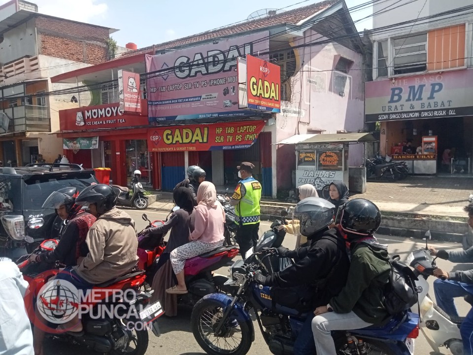 Cianjur | Petugas pengamanan Operasi Ketupat Lodaya 2025, Polsek Cibeber Polres Cianjur Polda Jabar, yang bertugas di Jl Raya Cibeber humanis dalam melaksanakan tugasnya ditengah ramainya para pemudik.
