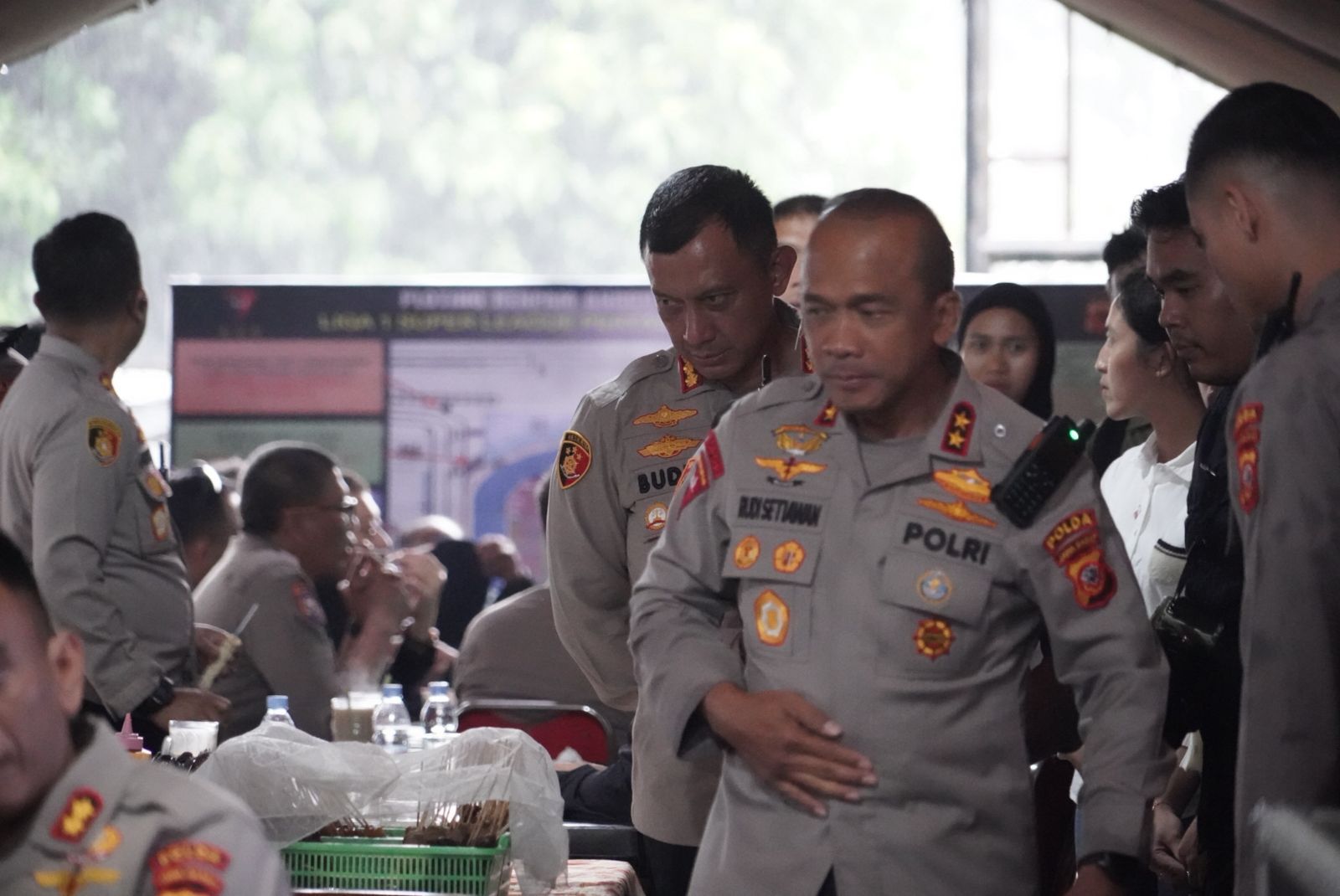 Kapolda Jabar Irjen Pol. Rudi Setiawan didampingi Wakapolda Jabar serta Pejabat Utama Polda Jabar melakukan pengecekan terhadap personel yang melaksanakan pengamanan pertandingan sepak bola BRI Super League antara Persib Bandung VS Persebaya.