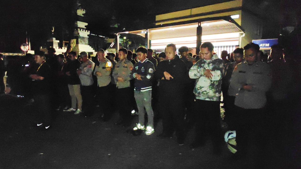 Suasana doa bersama ini menghadirkan kedamaian, memperlihatkan bagaimana aparat kepolisian, mahasiswa, berdiri dalam satu barisan untuk mendoakan almarhum.