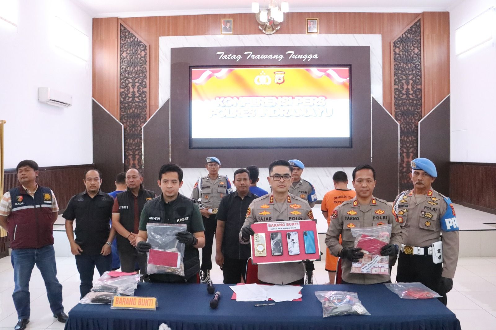 “Barang-barang yang dibeli dengan hasil kejahatan antara lain, satu mobil, tiga unit sepeda motor, empat unit handphone, satu unit tablet, lima kunci sepeda motor, dua BPKB, satu dompet, satu KTP, serta pakaian milik tersangka,” jelas Kapolres Indramayu, AKBP Mochamad Fajar Gemilang