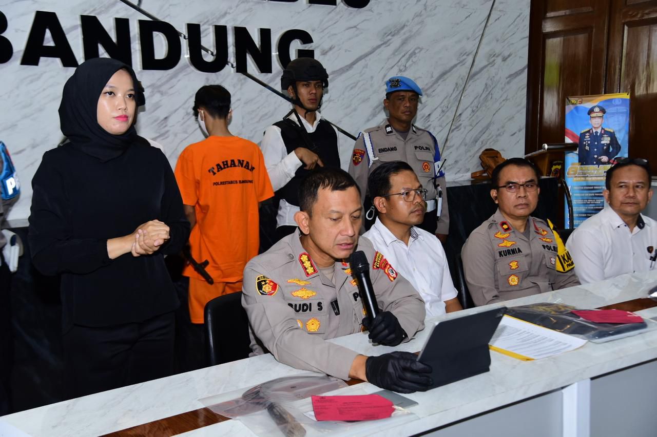 Bandung | Polrestabes Bandung melalui Kapolrestabes Bandung, Kombes Pol. Dr. Budi Sartono, S.I.K., M.Si., M.Han., didampingi Kasat Reskrim Polrestabes Bandung dan Kapolsek Panyileukan, menggelar press release terkait pengungkapan kasus yang menyebabkan hilangnya nyawa seorang pelajar SMK di wilayah Cibiru, Kota Bandung, Jumat malam, 1 Agustus 2025.