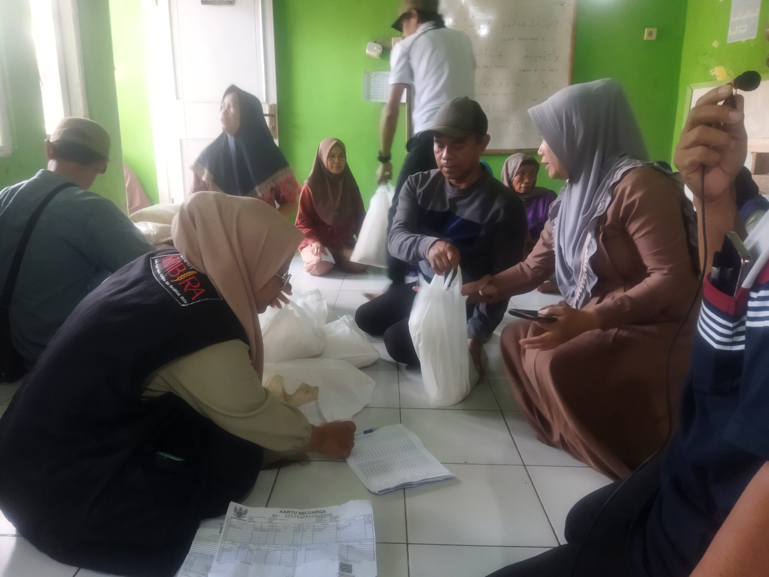 Program bantuan sembako ini dibagikan di lokasi khusus yang disiapkan untuk warga lansia dan kaum dhuafa di wilayah RW 02 Desa Sukamanah.
