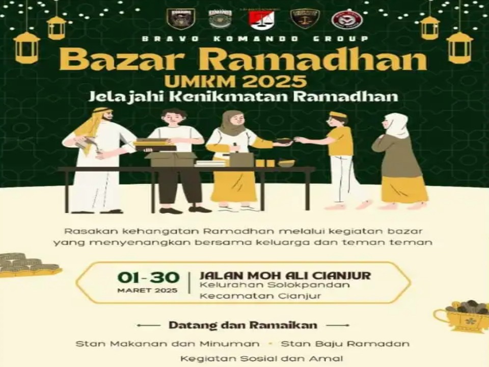 Cianjur | Bravo Komando Grup kembali suguhkan bazar ramadhan yang berlangsung di Jl Moch Ali Kelurahan Solokpandan, Cianjur, terhitung sejak tanggal 1 sampai 30 Maret 2025.