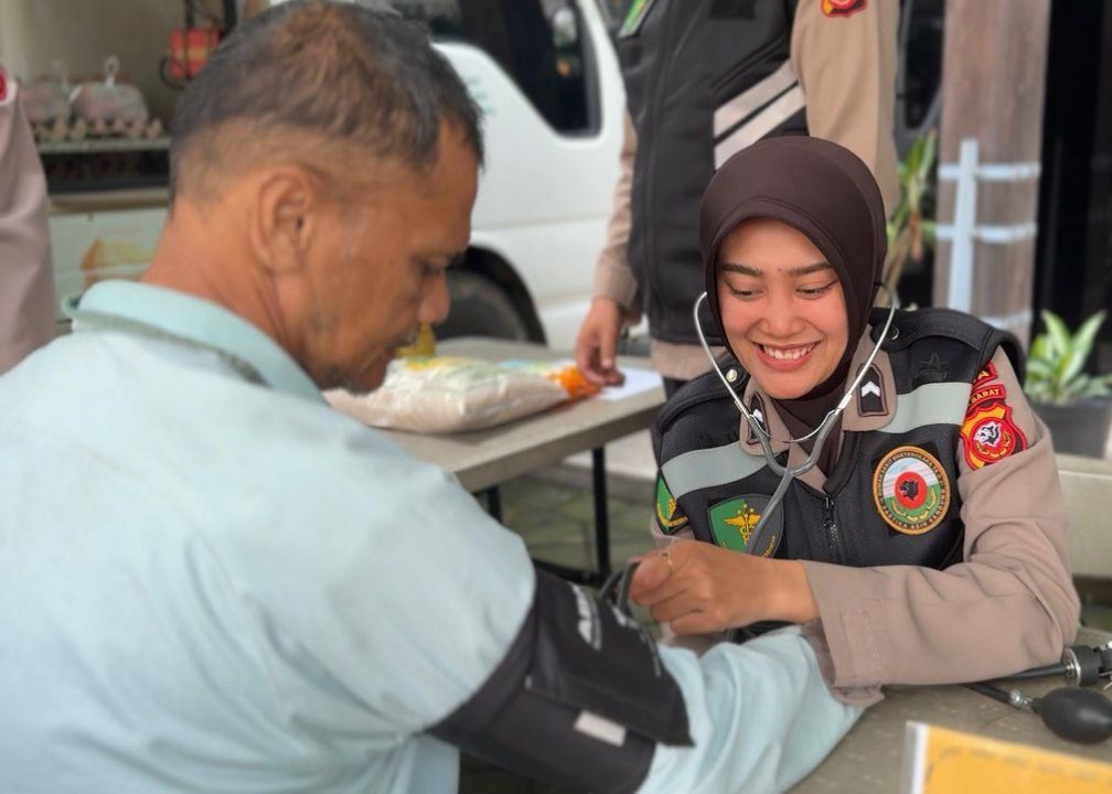 Dalam pelaksanaan kegiatan, tim medis RS Bhayangkara TK II Sartika Asih memberikan layanan pemeriksaan tekanan darah, kadar gula darah dan konsultasi kesehatan umum.