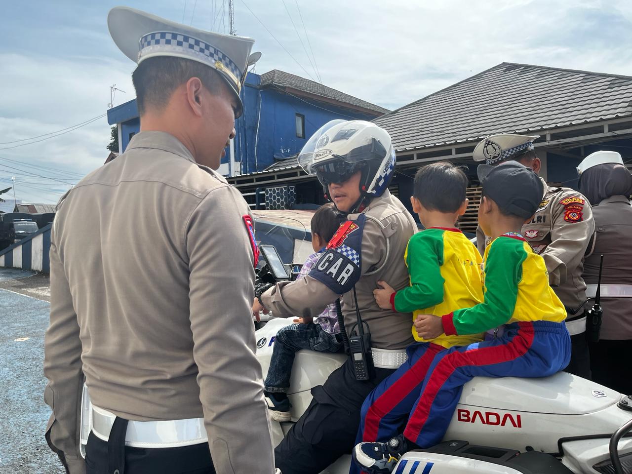 Cianjur | Satuan Lalu Lintas Polres Cianjur melalui Unit Kamsel (Keamanan Keselamatan Berlalu Lintas) menggelar kegiatan Polisi Sahabat Anak, kegiatan tersebut digelar guna memberikan edukasi dan bimbingan kepada anak-anak TK/sederajat dalam berbagai aspek.