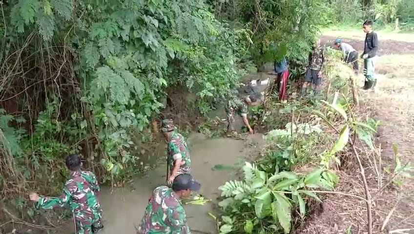 Gotong royong bersihkan saluran irigasi tersebut, selain merupakan program Jumat bersih juga Instruksi arahan/petunjuk dari Dansektor – 11 Kolonel Inf Chandra Wirawan dalam rangka membantu kebersihan lingkungan masyarakat serta mendukung program ketahanan pangan Nasional.