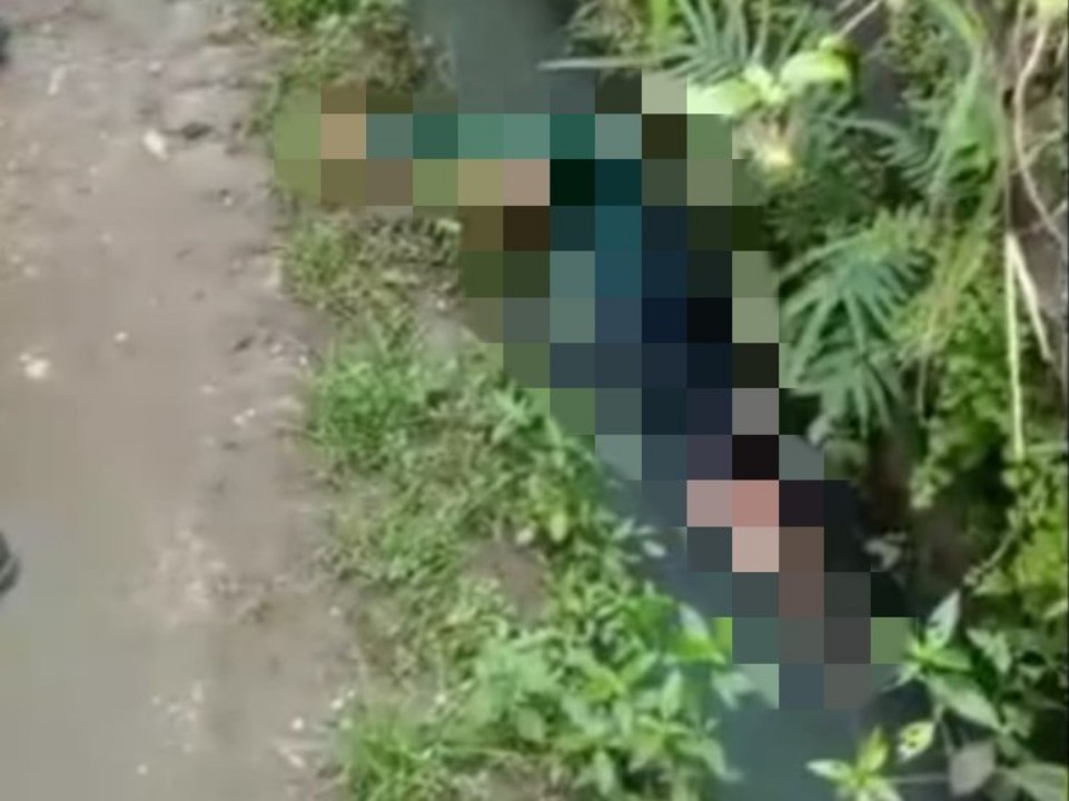 Sosok Mayat Pria Ditemukan Tewas di Selokan Dekat Gudang Semen di Sukaluyu. (Foto: Sam Apip).