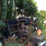 Polisi Evakuasi Truk Tronton Terguling di Kandanghaur Indramayu, Muatan Pasir Tumpah ke Jalan.