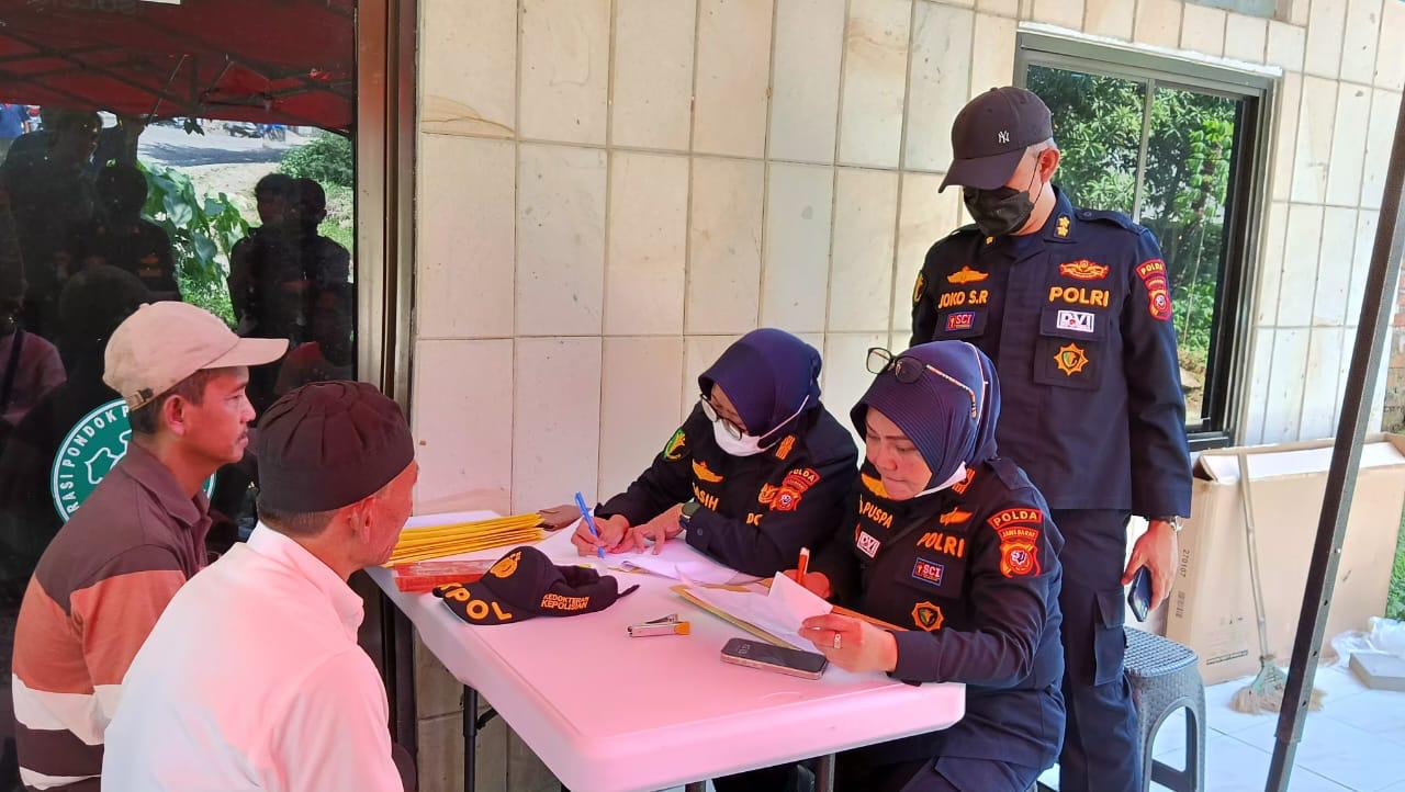 Tim DVI Polda Jabar Lakukan Pengambilan Sampel DNA Keluarga Korban Longsor Tambang Gunung Kuda. (Foto: Istimewa)