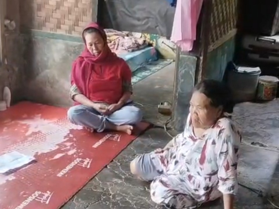 Pintu rumahnya miring, atapnya bolong-bolong, dan bilah-bilah bambu penyusun dinding sudah lapuk dimakan usia. Rumah itu terakhir kali dibangun pada tahun 2000, saat suami tercintanya, almarhum Suwita, masih hidup. Namun sejak Suwita berpulang pada 2004, tak sekalipun perbaikan pernah menyentuh rumah tersebut.