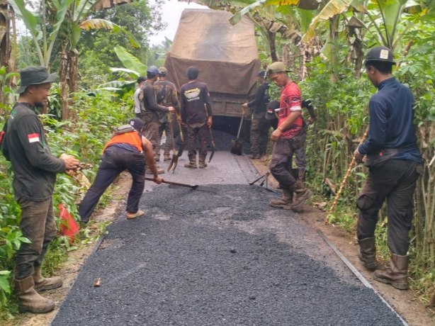 Cianjur | Pemerintah Desa Kertamukti, Kecamatan Haurwangi, Kabupaten Cianjur, Jawa Barat, sedang melaksanakan pengerasan jalan dengan metode hotmix sebagai upaya meningkatkan perekonomian masyarakat.